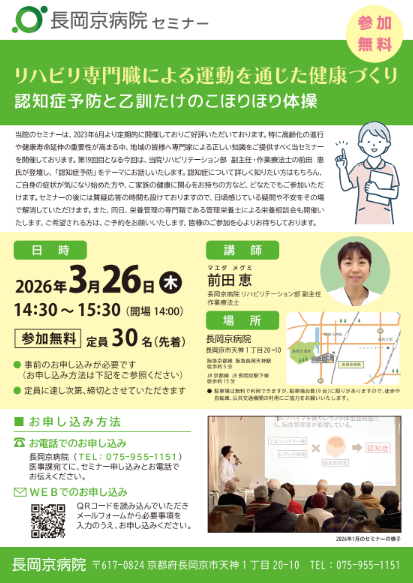 開催場所:長岡京病院 2階 リハビリ室 〒617-0824京都府長岡京市天神1丁目20-10